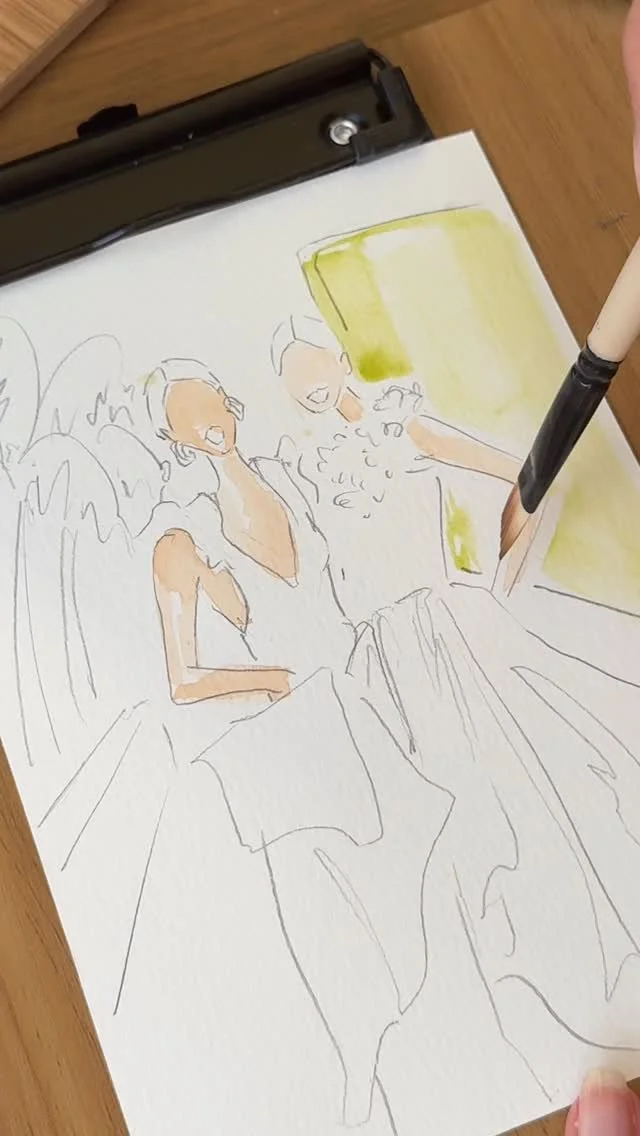 My live watercolor illustrations transform weddings, brand events, and creative experiences into personalized keepsakes, while the acrylic paintings explore storytelling through bold textures, fluid color, and a modern, fashion-forward palette.