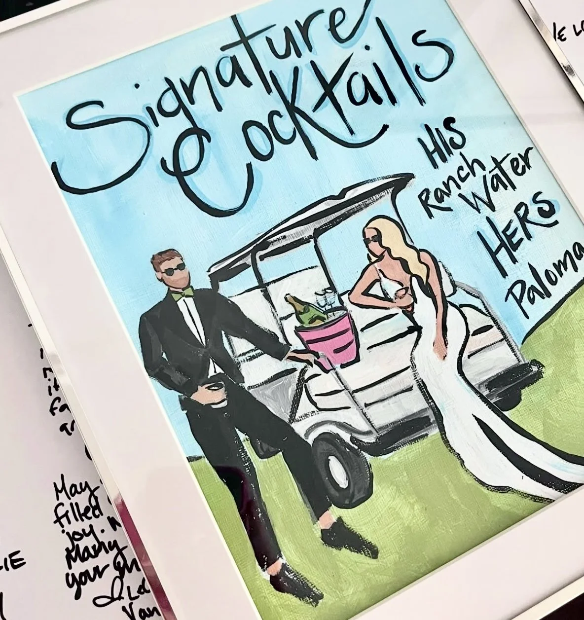 With hand-painted signage, this offers a unique way to share the personality of you and your fiancé. We can capture your wedding colors and keep it simple with a painted font, or add character through featuring: